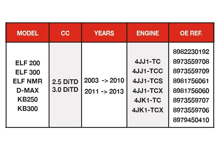 OEM REFERENCE: 8973559706, 8973559707, 8973559708, 8973559709, 8979450410, 8981756060, 8981756061, 8982230192.